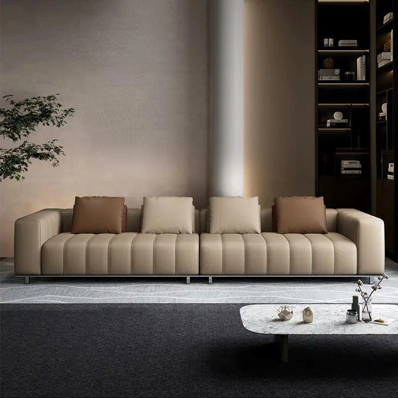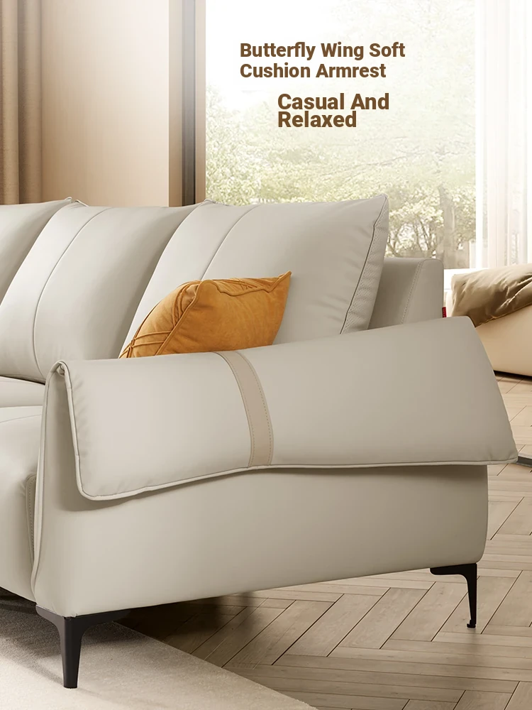 Italian Minimalist Luxury Real Leather Sofa for Small Living Rooms - Milo Style Three-Seater with Piano Key Design, Perfect for Home Use