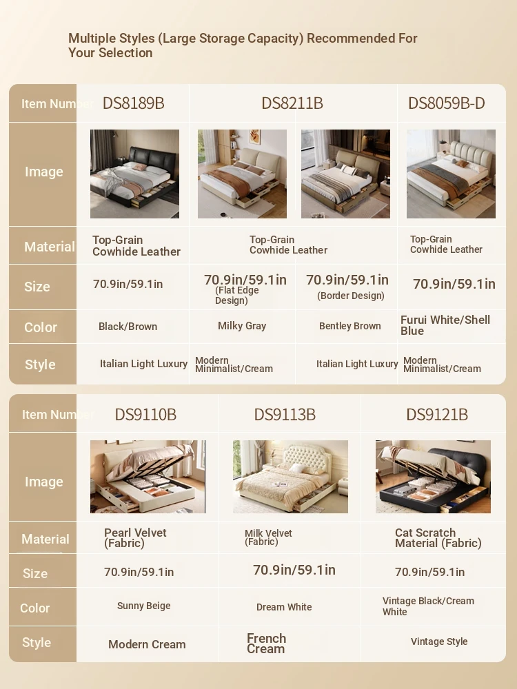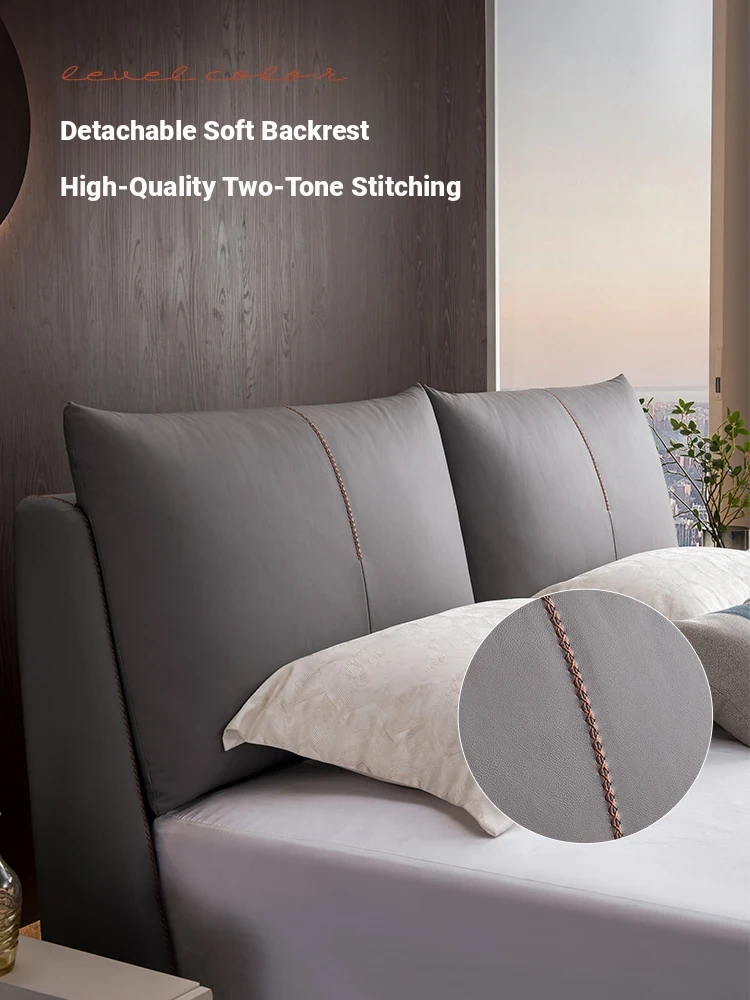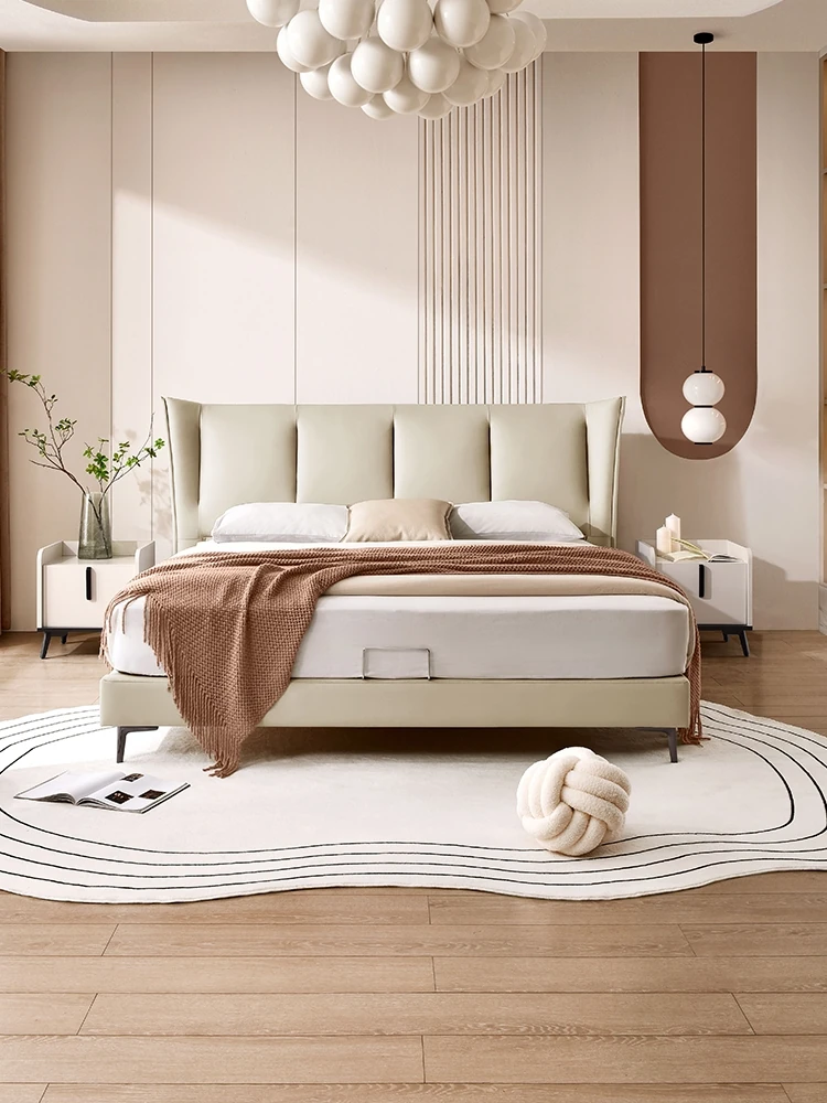Gujia Home Official Modern Luxury Leather Storage Bed - Minimalist Design Double Bed for Master Bedroom 2913, Perfect for Newlyweds