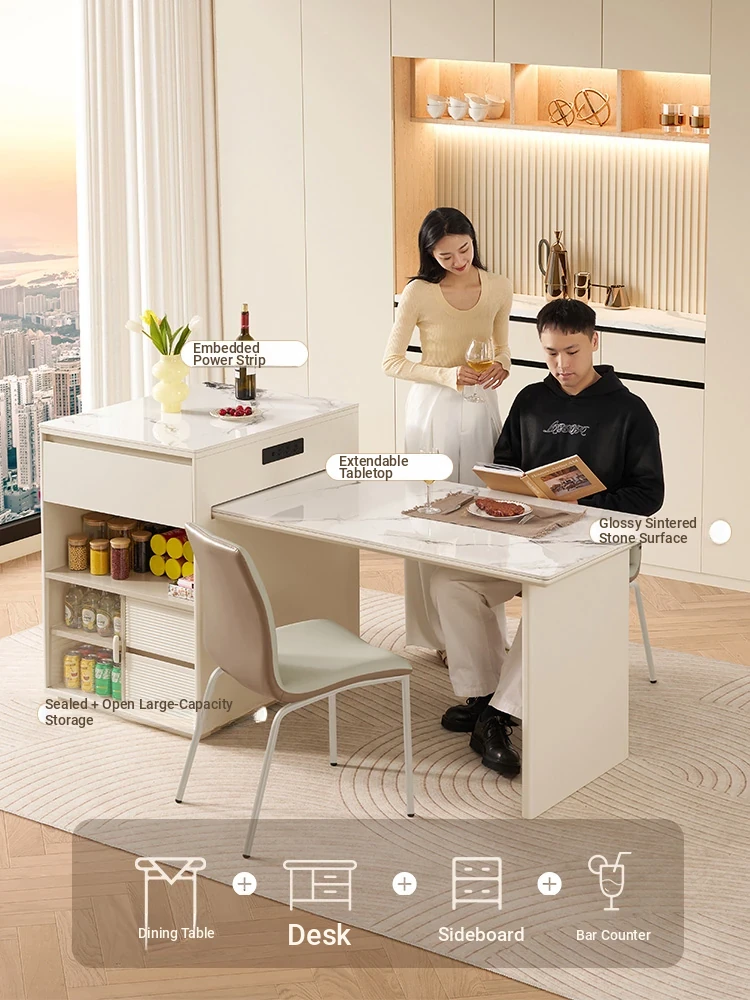 Gujia Home Creamy Chic Luxury Dining Table Set – Expandable, Multi-Functional Stone Island Design with Storage (Model PT7151KC)