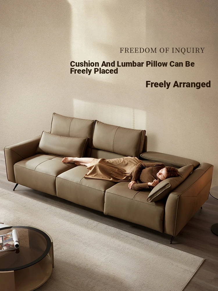 Gujia Home Italian Chic Top-Grain Leather Multi-Functional Deep Comfort Sofa Bed with Adjustable Features - Model YG.6229