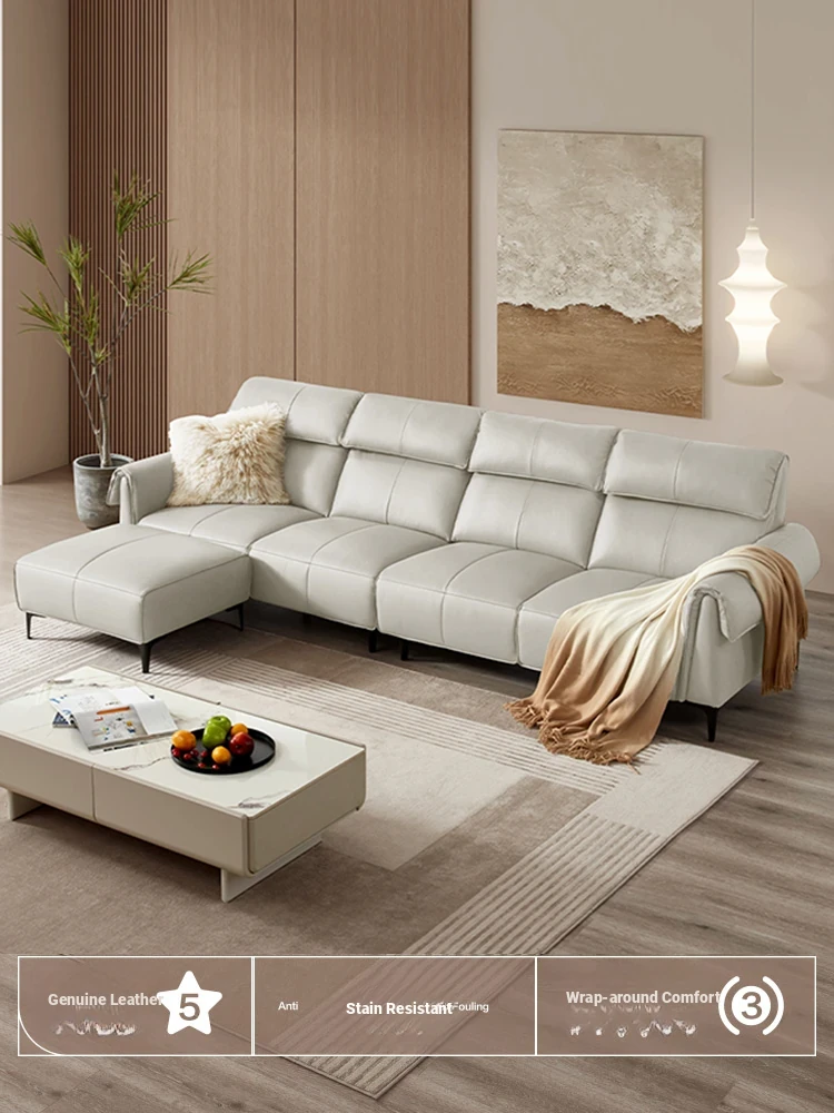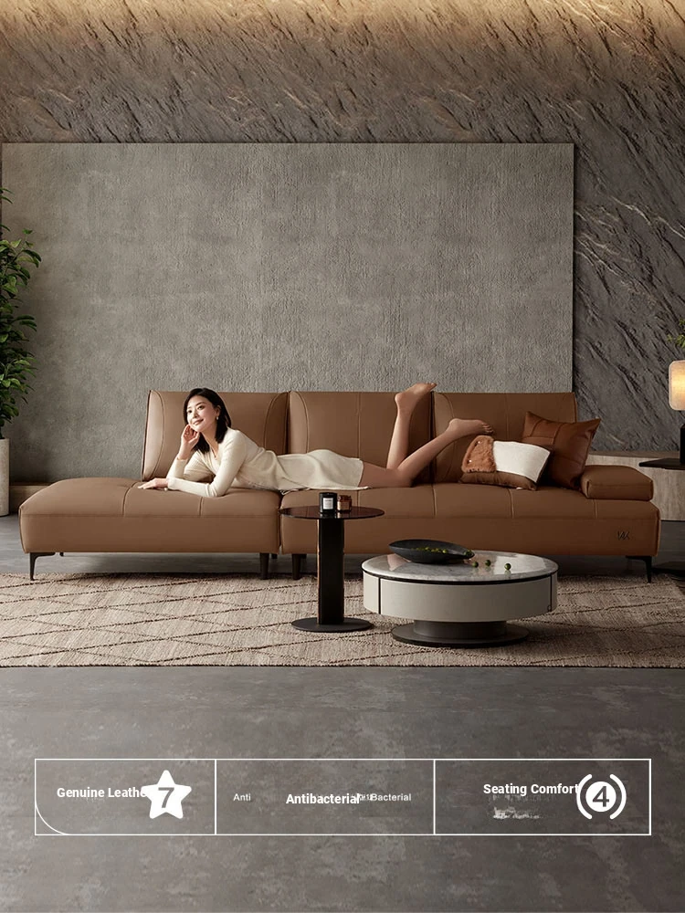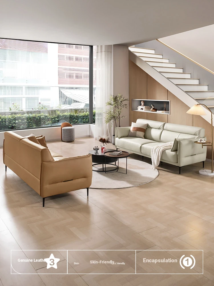 Gujia Home Modern Minimalist Genuine Leather Sofa - Premium Top Grain Leather for Small Apartments, Stylish and Comfortable Design