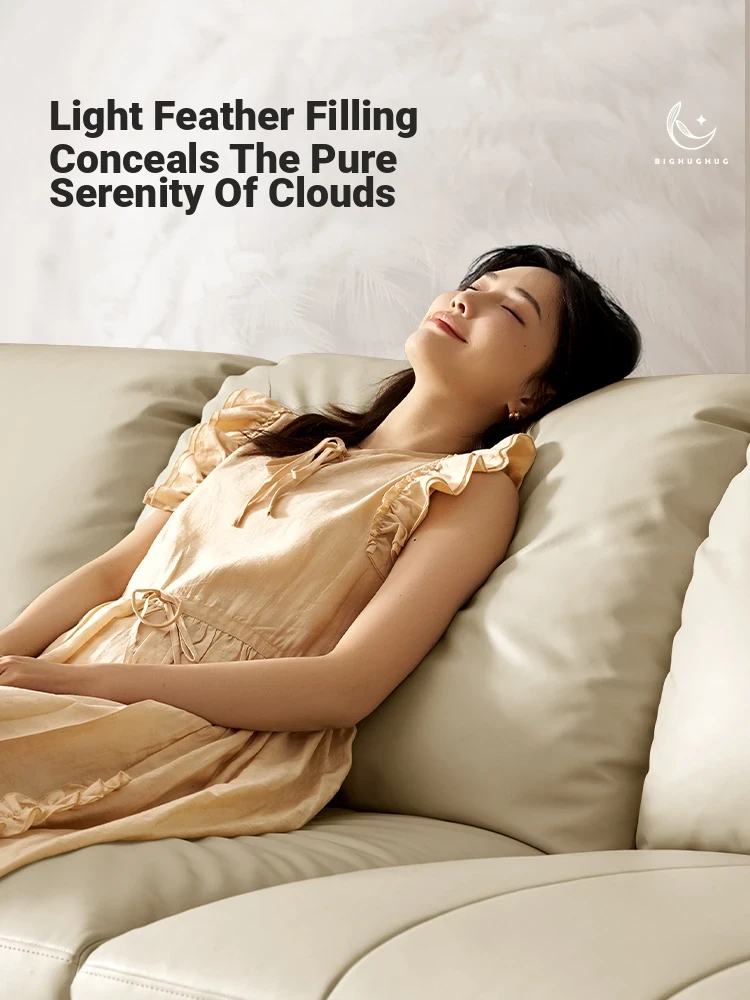 Title: Cozy Home American Style Plush Sofa - Genuine Leather & Feather Filled Comfort