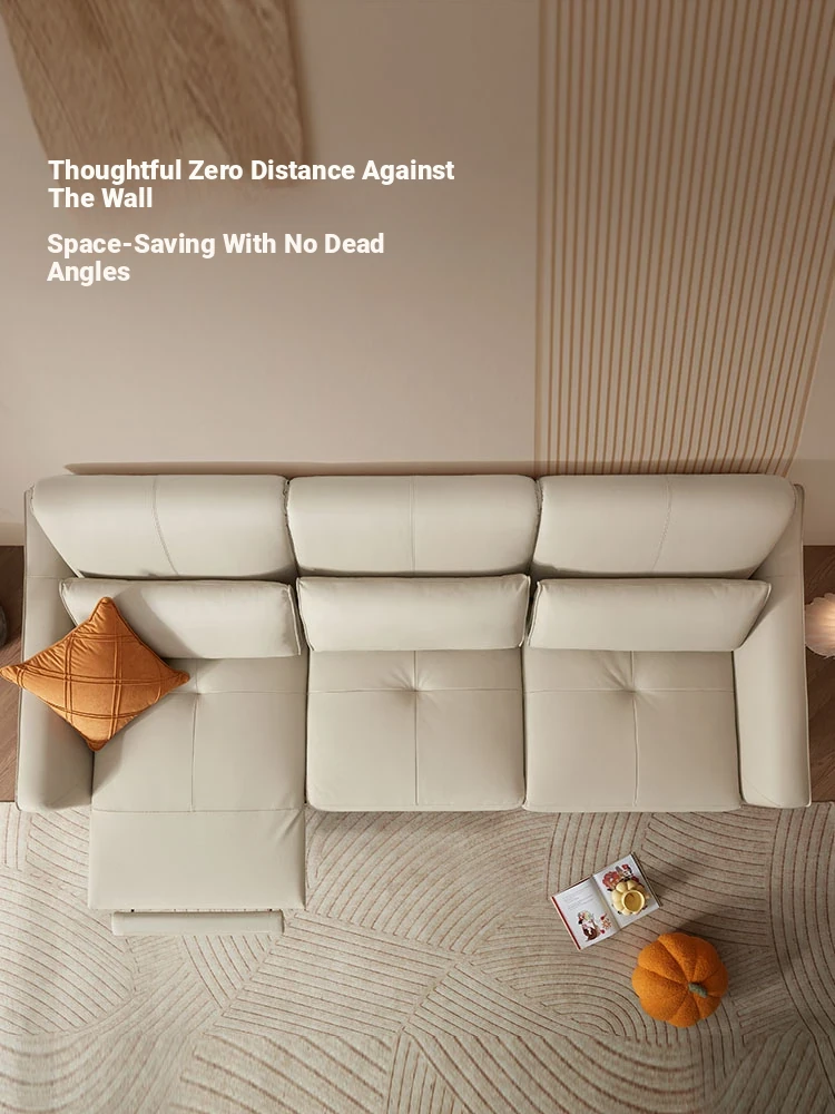Gujia Home Cream Cloud Genuine Leather Sofa - Electric Recliner, Premium Top Grain Leather, Perfect for Your Living Room - Model 6190