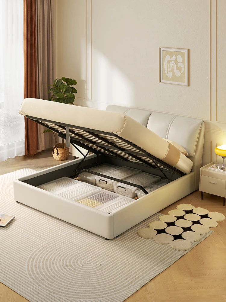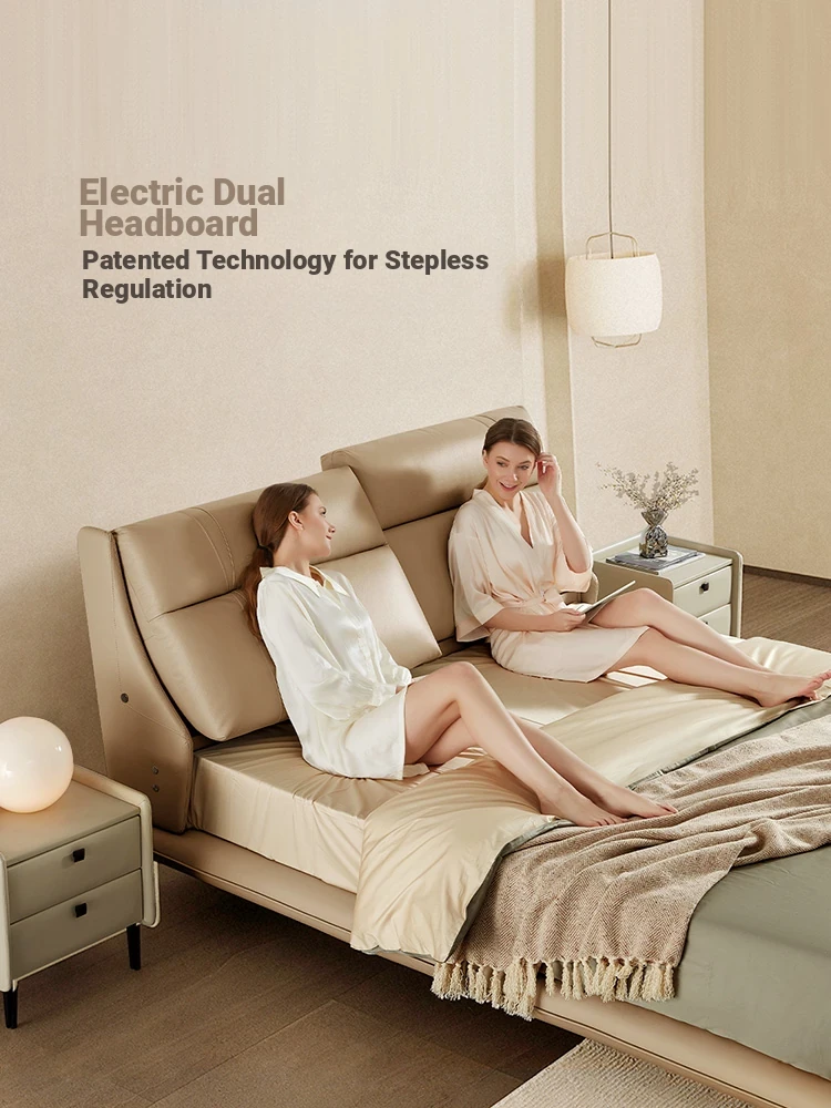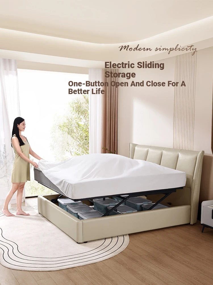 Gujia Home Modern Cream-Leather Adjustable Electric Storage Bed for Master Bedroom - Model 8073B, Perfect Blend of Comfort and Style