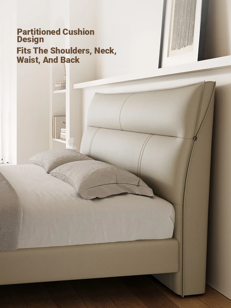 Modern Minimalist Italian Luxury Genuine Leather Headboard Bed - Premium Cowhide Upholstered Bedroom Bed 8306 by KUKA Home - Elevate Your Master Suite with Sophisticated Comfort