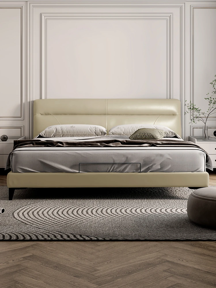Luxurious Modern Minimalist Genuine Leather Double Bed Set for Master Bedroom - Perfect for Newlyweds, by Kuka Home