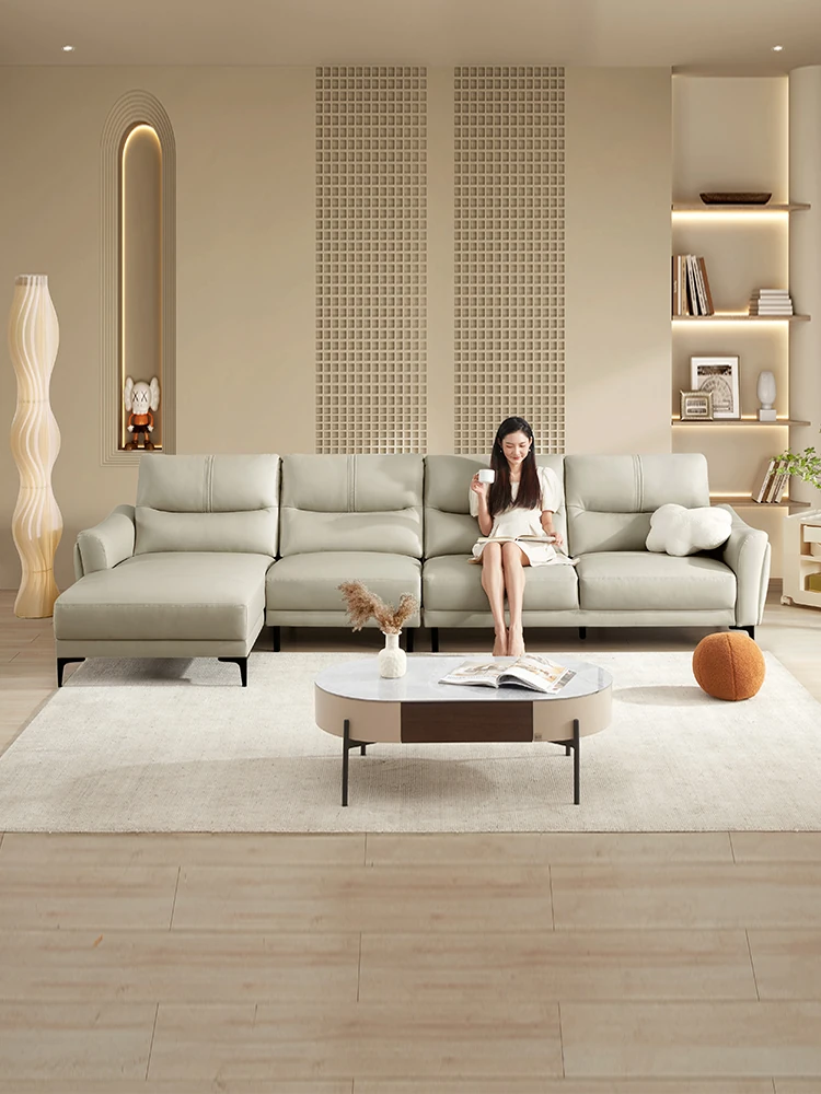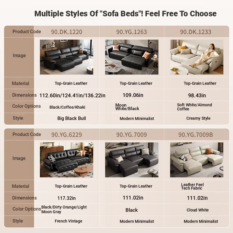 Gujia Premium Italian Minimalist Genuine Leather Sofa Bed - Modern Electric Design for Your Living Room Comfort