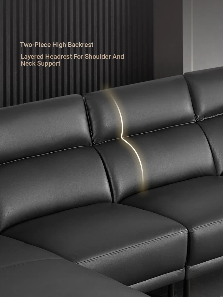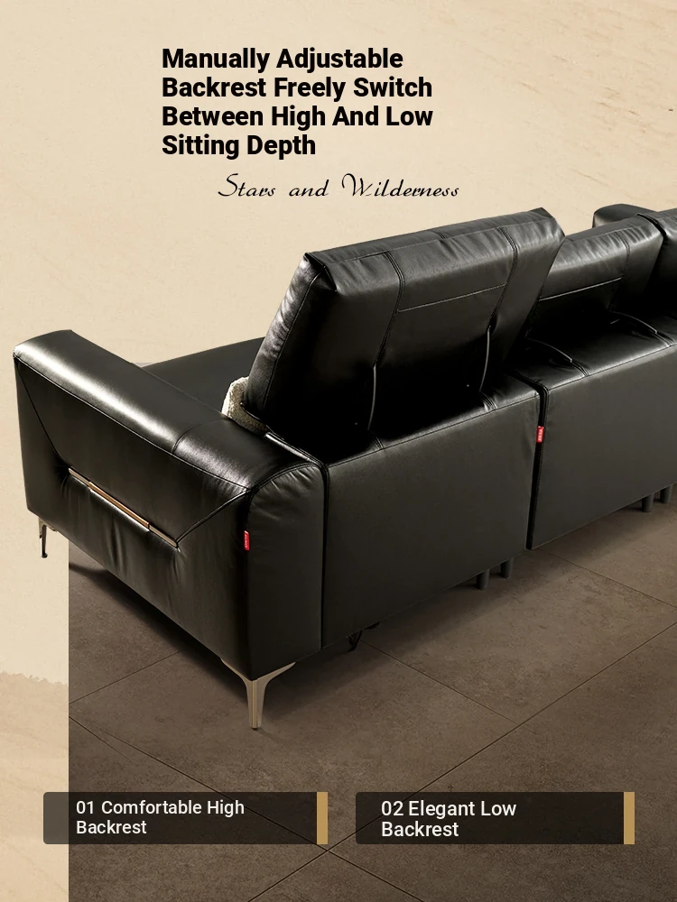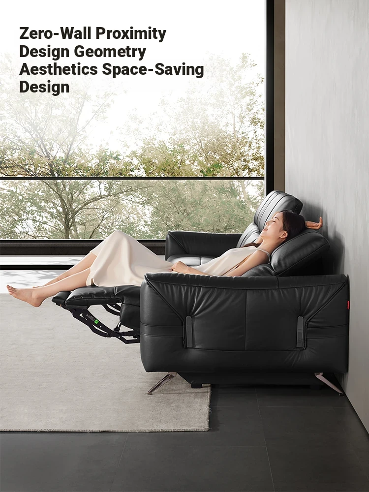 Gujia Home Intelligent Genuine Leather Sofa - Sleek Napa Top Grain Leather, Zero Wall Clearance, Minimalist Design, Electric Model 6068