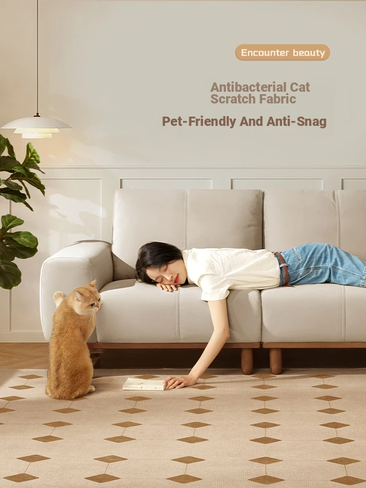 Gujia Home Original Wood Cream Style Antibacterial Cat Scratch Fabric Sofa - Deep Seat, Easy-Care Upholstery (Model 2301) - Perfect for Stylish & Pet-Friendly Living Spaces