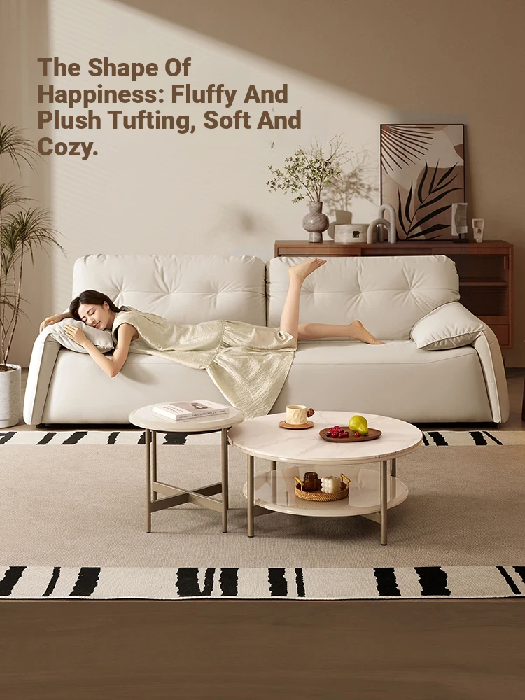Gu Jia Modern Minimalist Cream-Styled Fabric Sofa - Stain-Resistant & Scratch-Resistant, with Deep Seat for Extra Comfort - Perfect for Cat Owners and Stylish Living Rooms