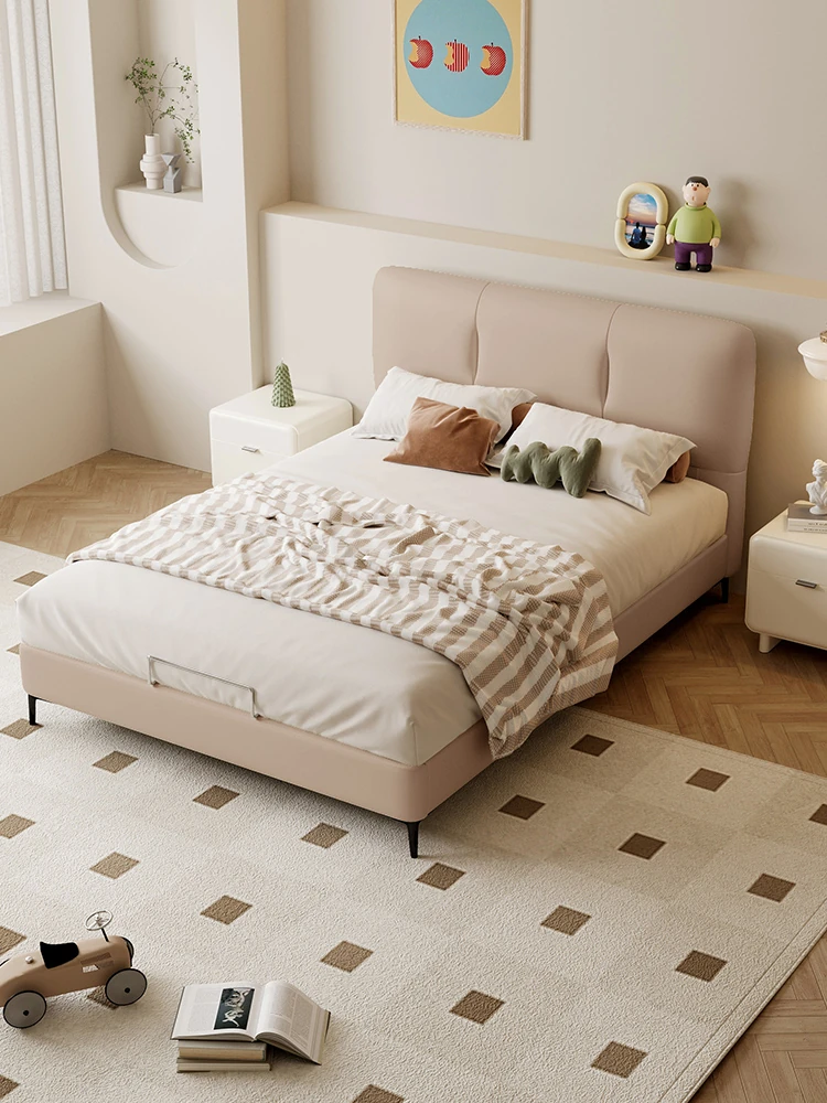 Gujia Home Modern Cream Style Cat-Scratch Resistant Upholstered Bed for Small Bedrooms - Durable, Comfortable, and Stylish齐边床DS9153B