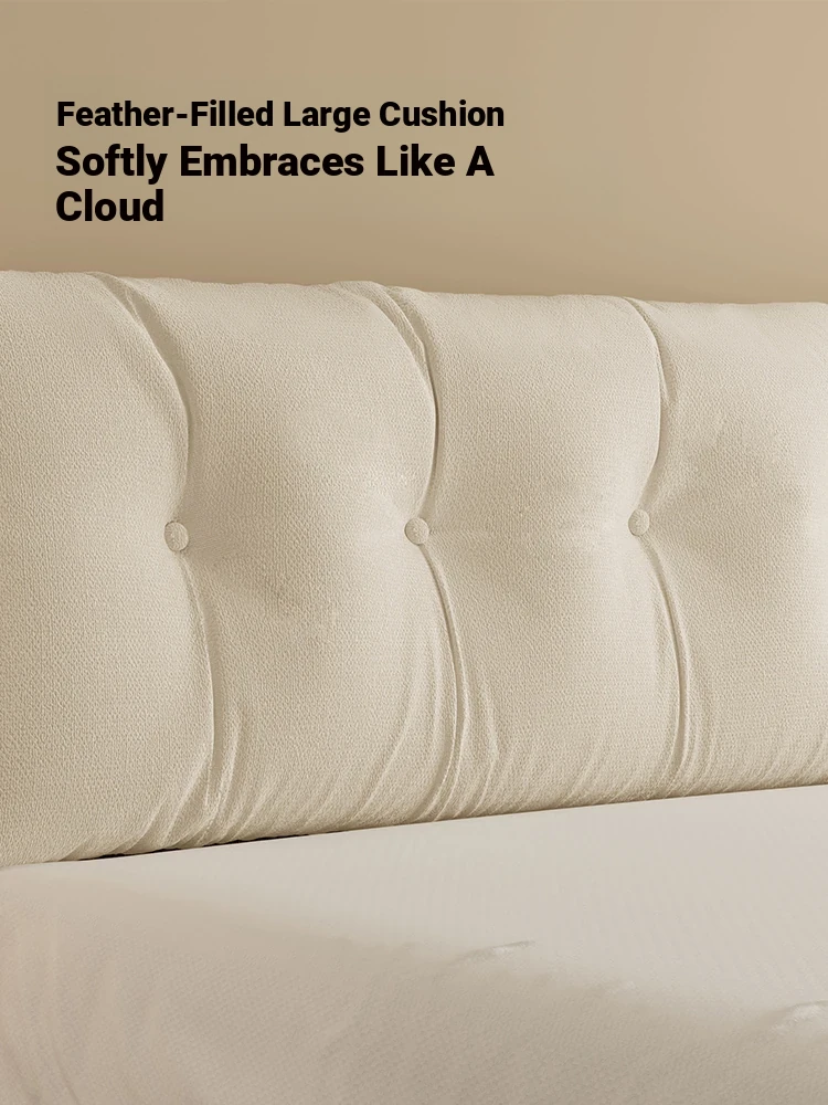 Gujia Home Official Modern Feather-Filled Bed for Small Bedroom - Cotton Linen Edge, Model DS9139B - Perfect Comfort for Cozy Spaces