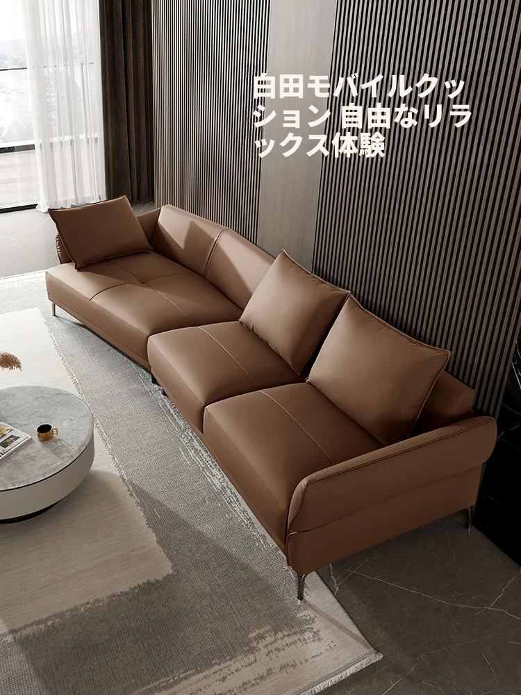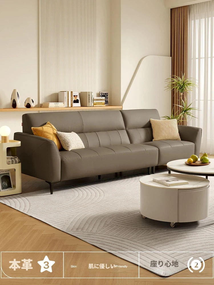 【新登場】ハイセンスな現代中式本革ソファセット-高級頭層牛革、小型リビングにぴったり!