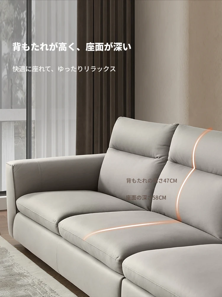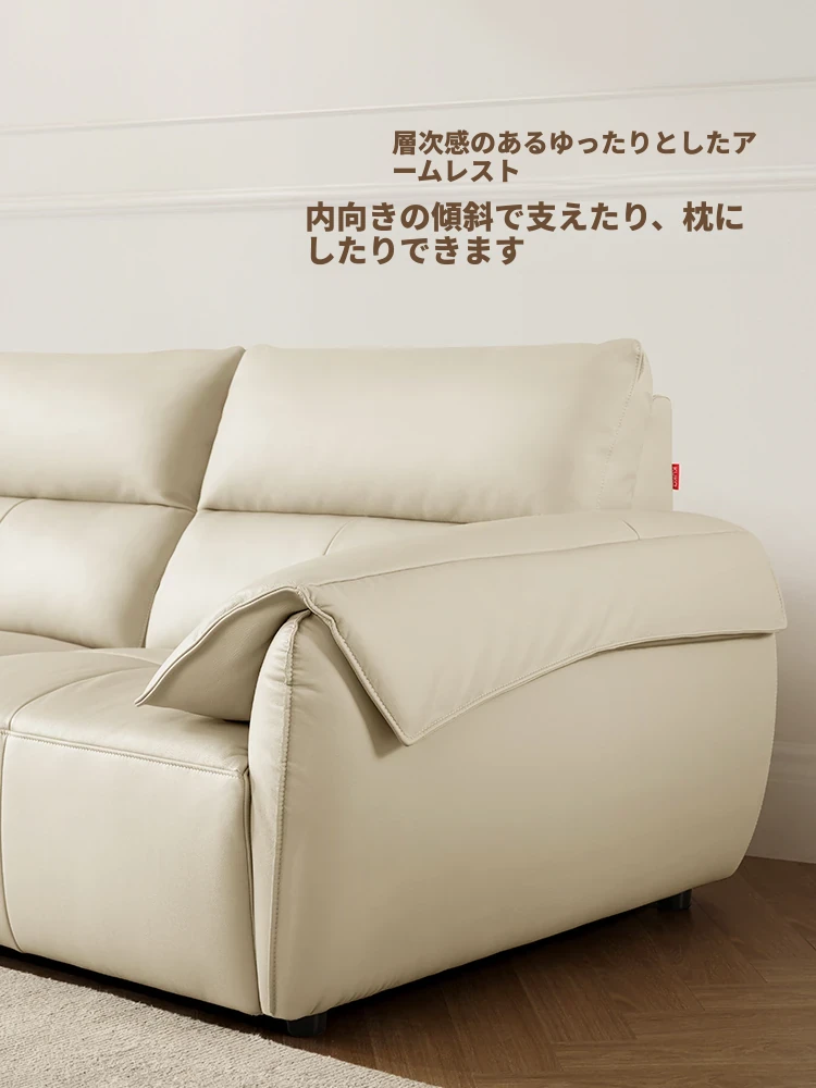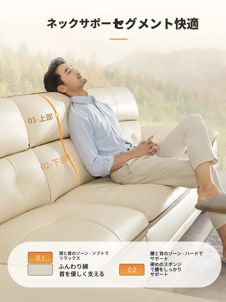 【極上のくつろぎ体験】Gujia家具 モダンでシンプルなクリームスタイルの本革ソファDK.1281:リビングとメインベッドルームにぴったりの深い座り心地を楽しめます。