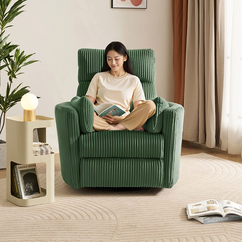 心地よいくつろぎ空間を演出!KUKAホームのコーデュロイ布製リクライニングチェア YGA633 - 揺れたり回転したりできる多機能電動ソファ