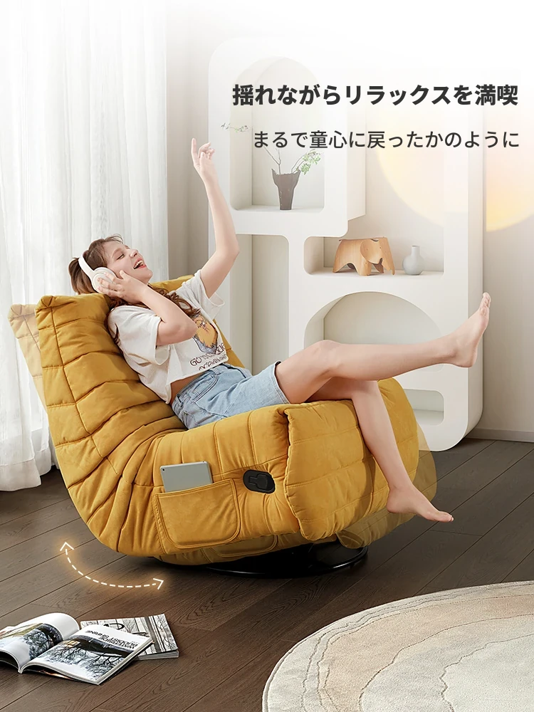 【顾家家居】プレミアムベロア素材の1人掛け電動リクライニングチェア|360度回転&ロッキング機能付き|YG.A629