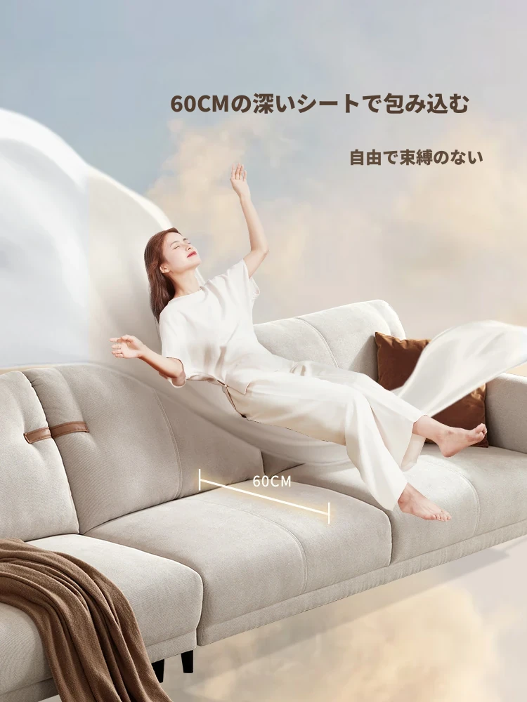 心地よい居家生活!エコフレンドリーなコンパクトモダンソファ:雲のような肌触り、中小型リビングにぴったりのコットンリネンスタイル、居心地の良さを実感してください!
